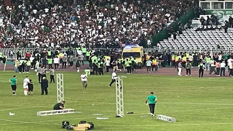 وأسفر الحادث عن سقوط عدد من المشجعين من المدرجات العلوية، مما أدى إلى تعرضهم لإصابات خطيرة، وسط تدخل عاجل من سيارات الإسعاف لنقل المصابين، مع تسجيل حالة وفاة وحيداً وفقاً للتقارير الصحفية.