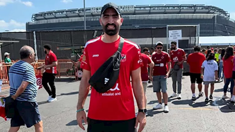 حرص أحمد صلاح لاعب فريق الطائرة السابق بالنادي الأهلي ولاعب السويحلي الليبي الحالي، على السفر إلى الولايات المتحدة الأمريكية، لدعم المارد الأحمر خلال مباراته اليوم أمام بالميراس البرازيلي بمونديال الأندية.