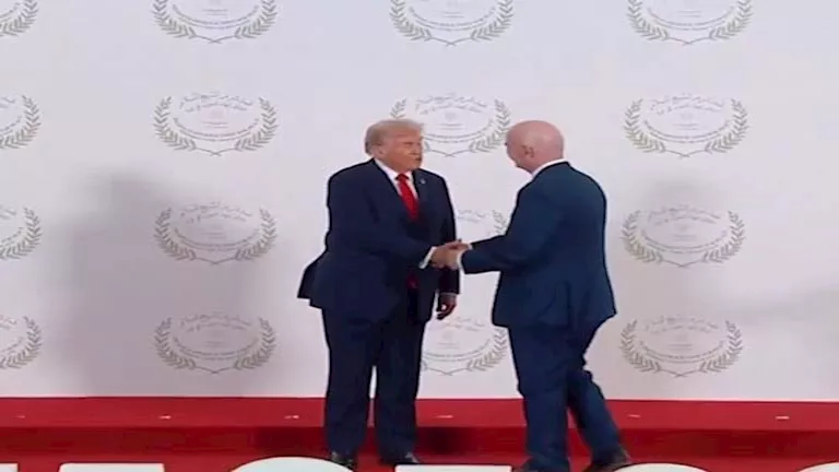 ظهر جياني إنفانتينو رئيس الاتحاد الدولي لكرة القدم “فيفا”، رفقة الرئيس الأمريكي دونالد ترامب، على هامش قمة السلام المقامة حاليا في شرم الشيخ.