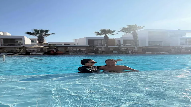 ونشرت زوجة اللاعب صورا لهم أثناء قضاء عطلتهم، عبر حسابها الرسمي على موقع تبادل الصور والفيديوهات “إنستجرام”.
