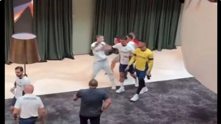 تداول رواد مواقع التواصل الاجتماعي مقطع فيديو مساء اليوم الجمعة يظهر خلالها النجم البرتغالي كريستيانو رونالدو وهو يدفع أحد المشجعين الذي رغب التقاط صورة سيلفي معه داخل فندق إقامة بعثة منتخب البرتغال.