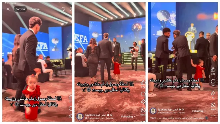 وحرص عاشور على حمل ابنته “كتاليا” خلال حصده جائزة أفضل لاعب في مصر، للمرة الثانية التانية على التوالي.